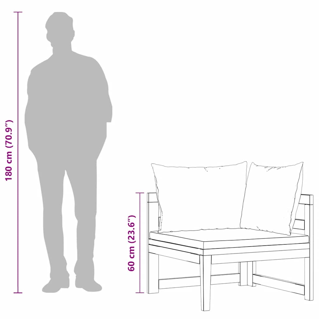 Enjoy a cosy leisure time with your friends or family in the outdoor space on this wooden corner sofa! This garden corner sofa is made of solid acacia wood, a hardwood with dense grains. This beautifully-designed outdoor corner sofa is stable, durable and eye-catching. Additionally, the exquisite craftsmanship and beautiful wood grains make every piece slightly different from the next. In addition, the included cushions add more comfort while resting. Note: In order to extend the life of your outdoor furniture, we recommend you to clean it regularly and do not leave it outdoors without protection unnecessarily.Clean: Use a mild soap solution.Storing: If possible, store in a cool, dry place indoors. If the product is stored outdoors, protect it with a waterproof cover. Wipe and dry the excess water or snow from flat surfaces after a rain or snowfall. Allow sufficient air circulation to avoid moisture-related damage.