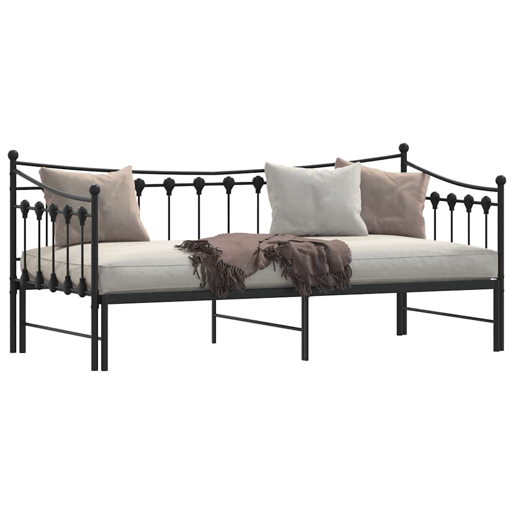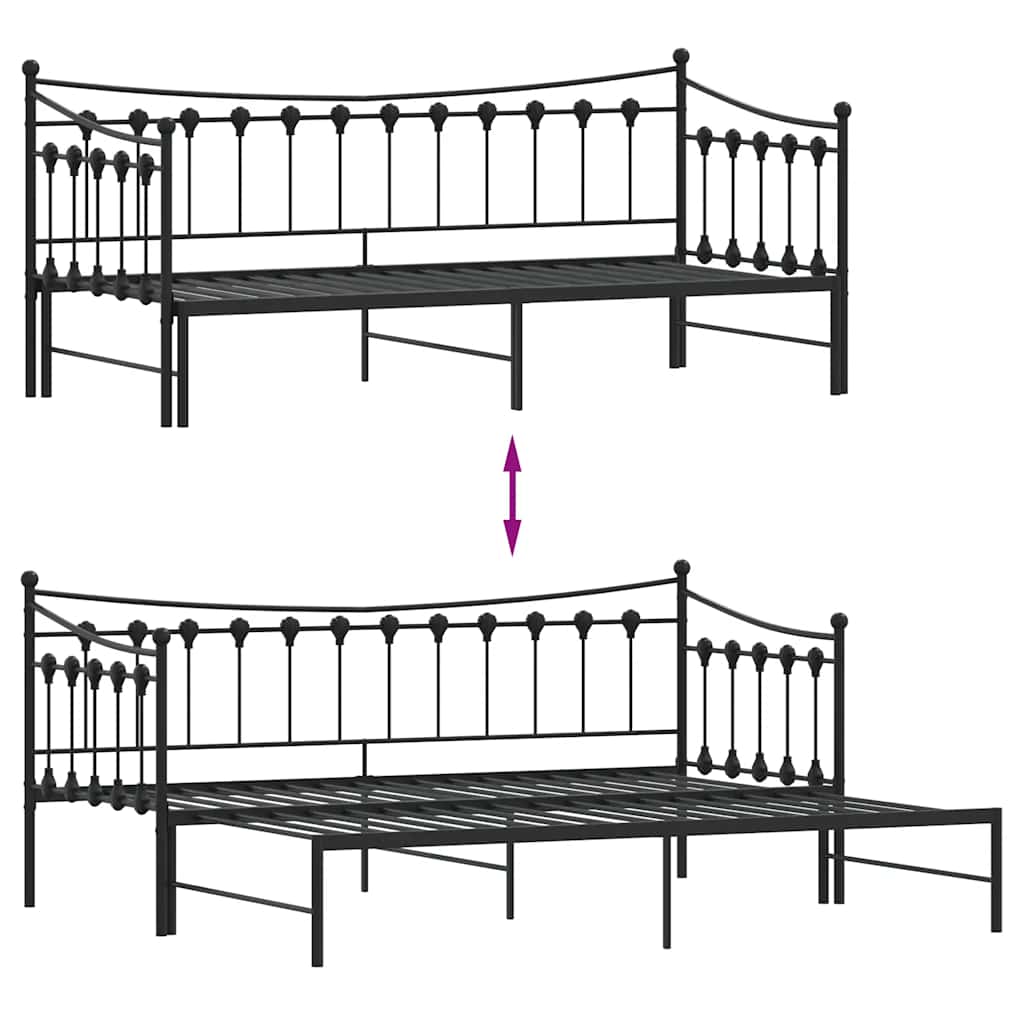 vidaXL Daybed with Trundle without Mattress Black 92×187 cm Single Metal