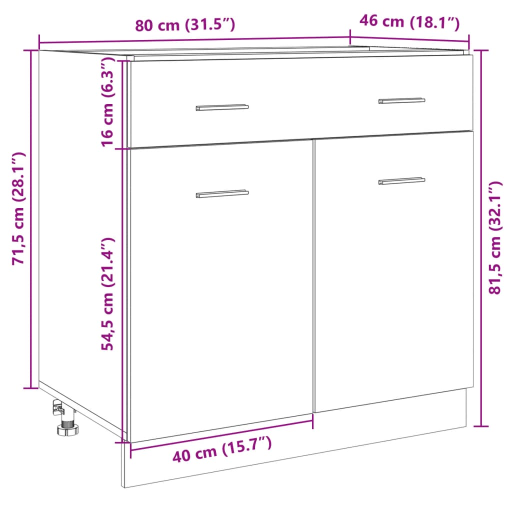 This drawer bottom cabinet optimises your kitchen space, providing ample storage space for your personal belongings! Long-lasting material: The engineered wood is of exceptional quality with a smooth surface and also features strength, stability, and resistance to moisture.Ample storage space: The kitchen cupboard offers ample space to store bowls, plates, pots, and other kitchen supplies.Sturdy top: The top of the kitchen cabinet can be used to place spices, kitchen utensils and cleaning supplies.Easy to maintain: Thanks to its smooth surface, the cabinet is easy to clean with a damp cloth and requires less maintenance. Warning:To prevent it from tipping over, this product must be used with the provided wall attachment device.