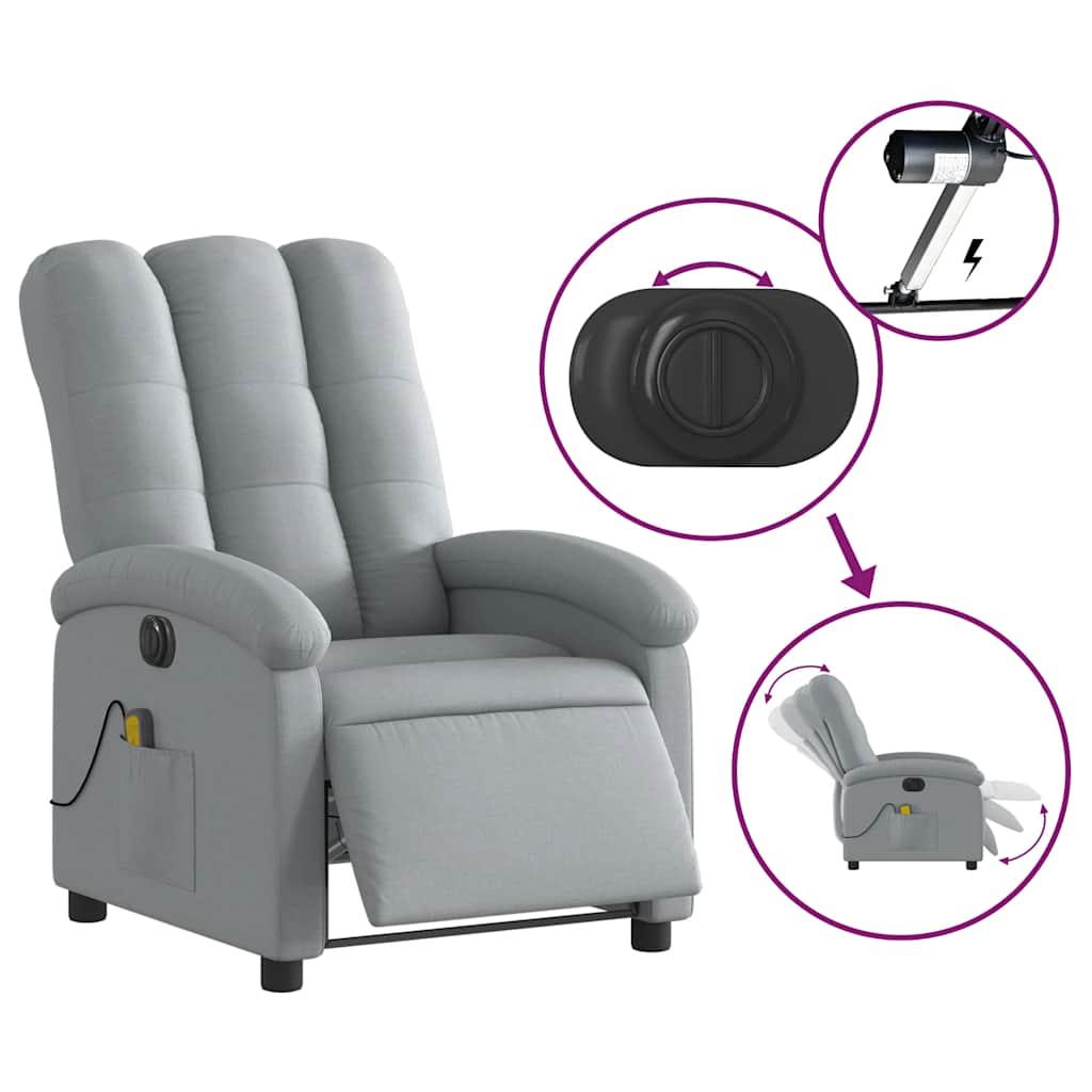 vidaXL Electric Massage Recliner Chair Light Grey Fabric