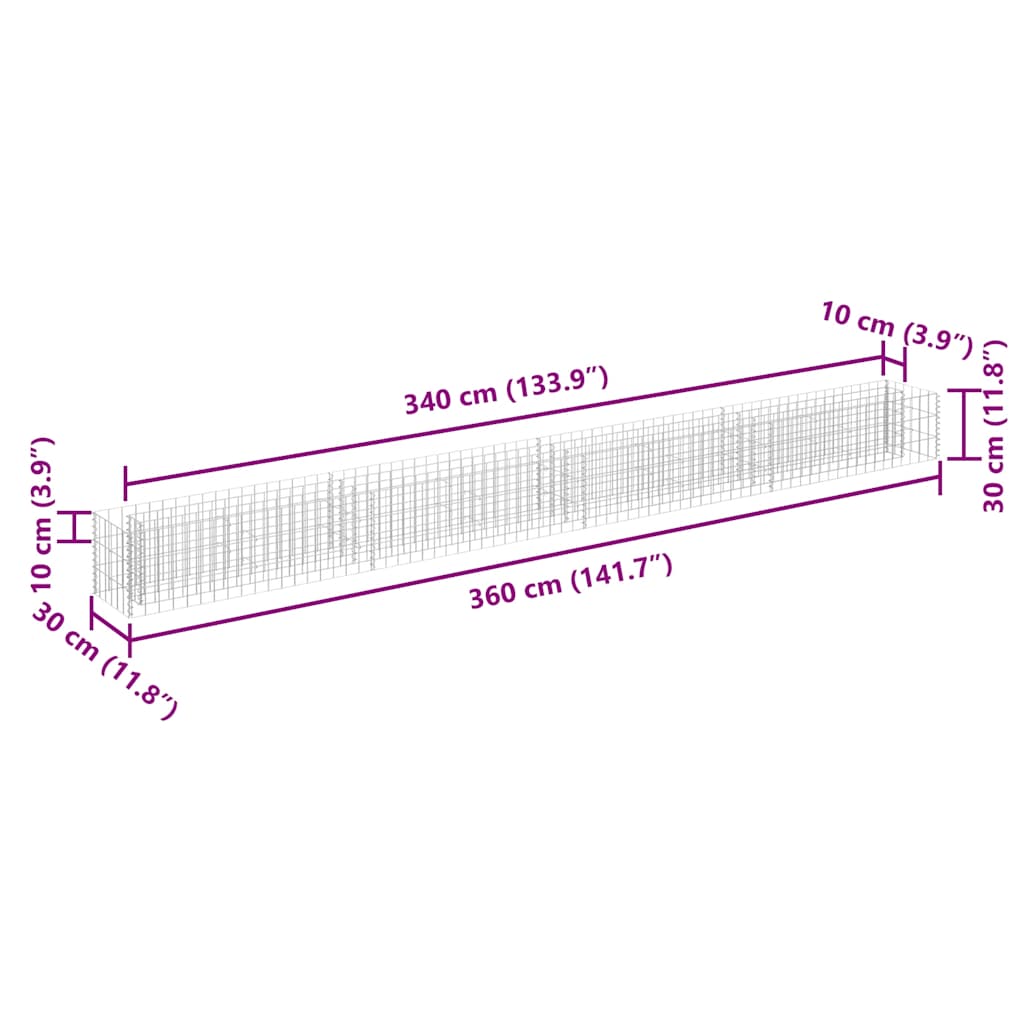 vidaXL Gabion Raised Bed Galvanised Steel 360x30x30 cm