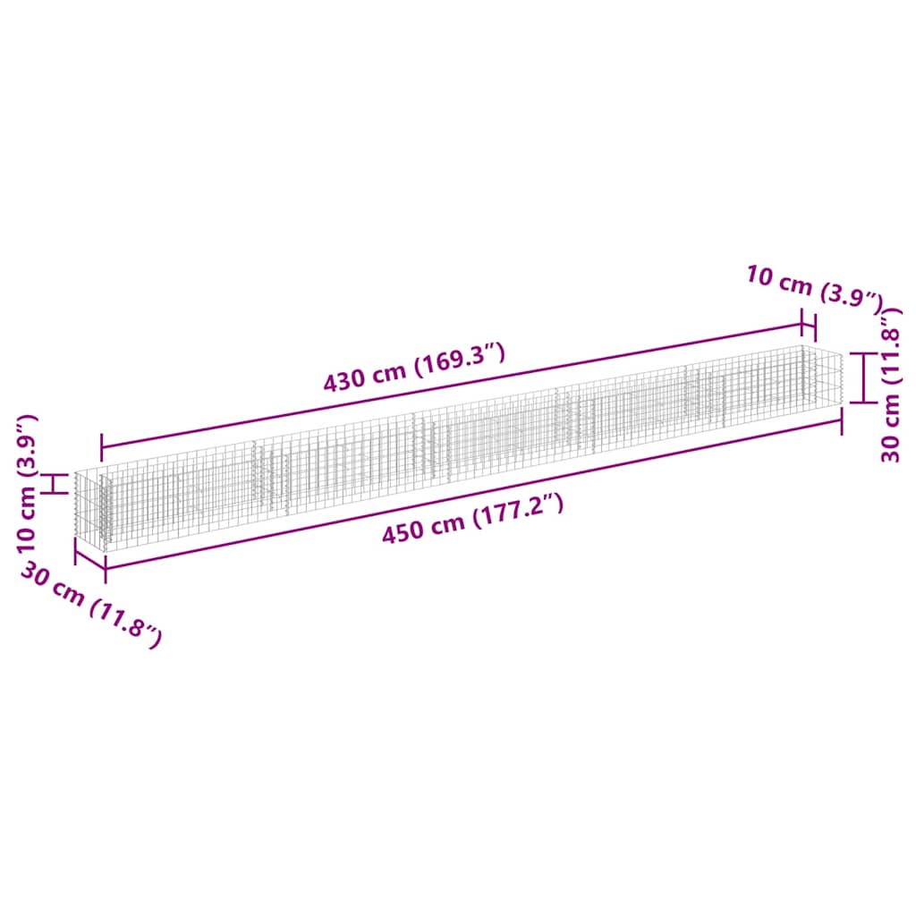 vidaXL Gabion Raised Bed Galvanised Steel 450x30x30 cm
