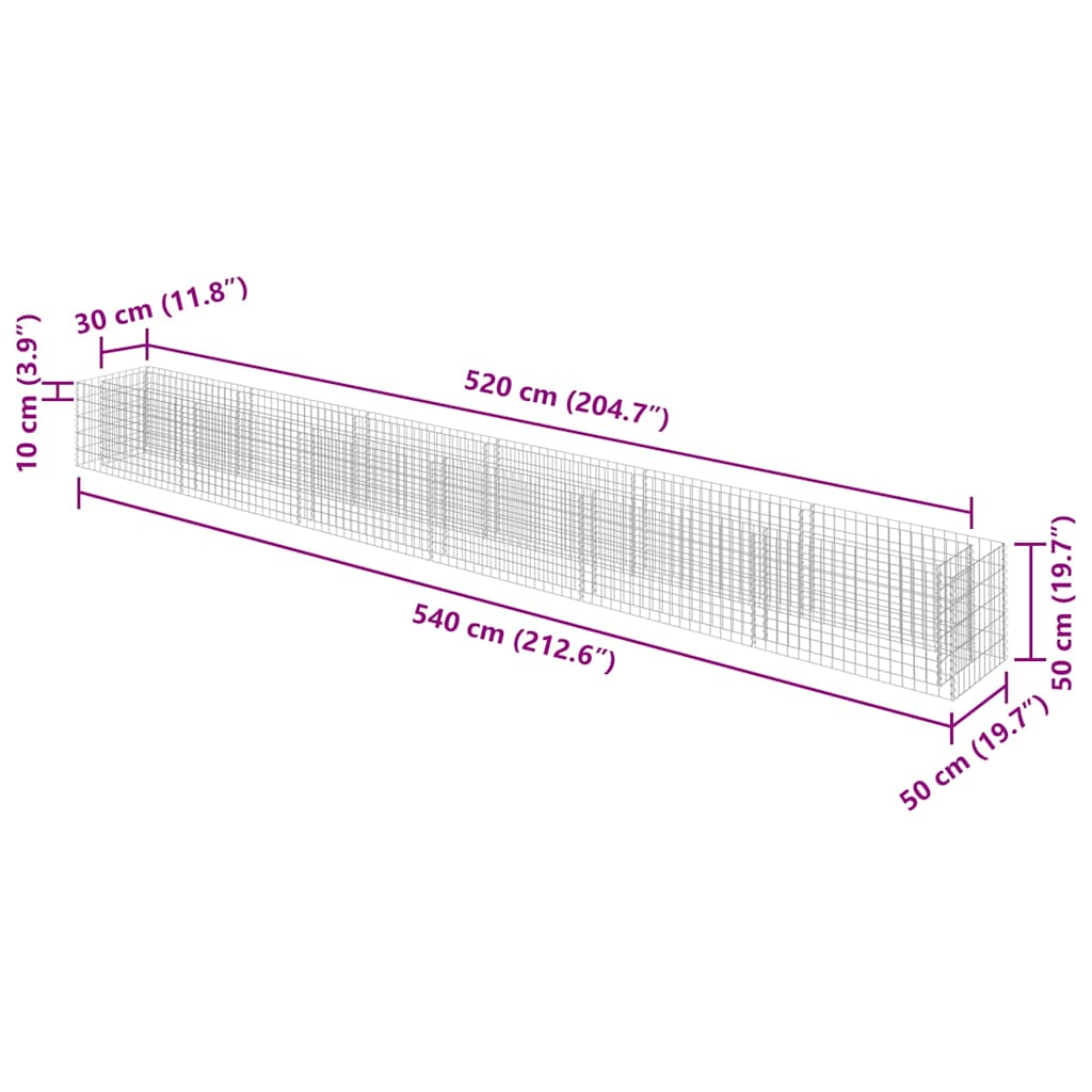 vidaXL Gabion Raised Bed Galvanised Steel 540x50x50 cm