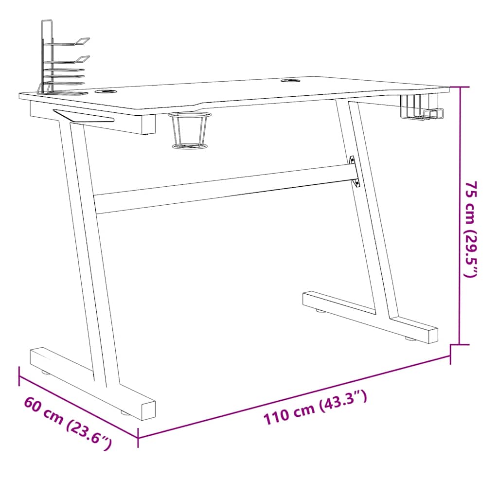 vidaXL Gaming Desk LED with Z Shape Black 110x60x75 cm