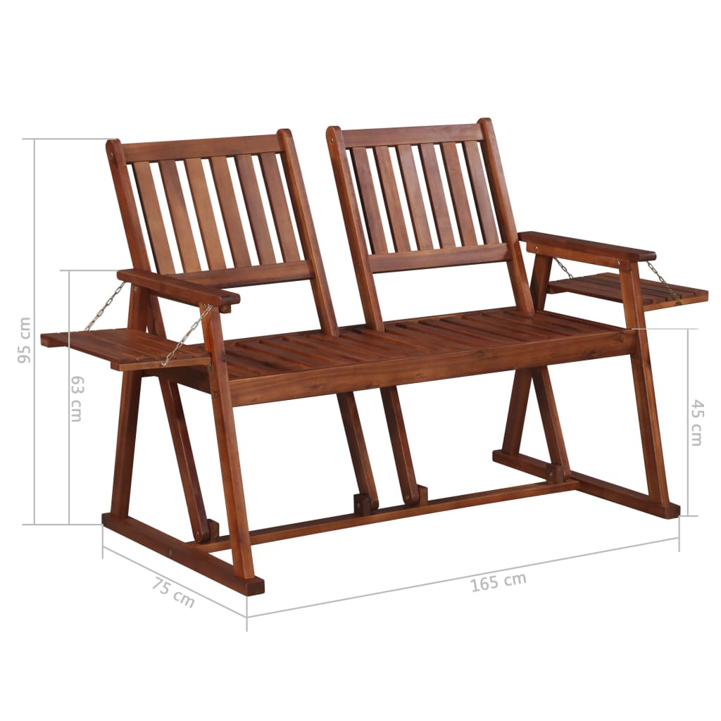 This versatile wooden bench will be an eye-catcher in any garden. The bench features flexible and functionally-designed backrests which make it easy to switch the way you face by just a flip of the backrest. It is also equipped with two platforms on both sides of the armrests which provide a surface for placing various items like books, teacups, etc. Made of solid acacia wood, the bench is sturdy and durable and is easy to clean with a damp cloth. The garden bench is easy to assemble.