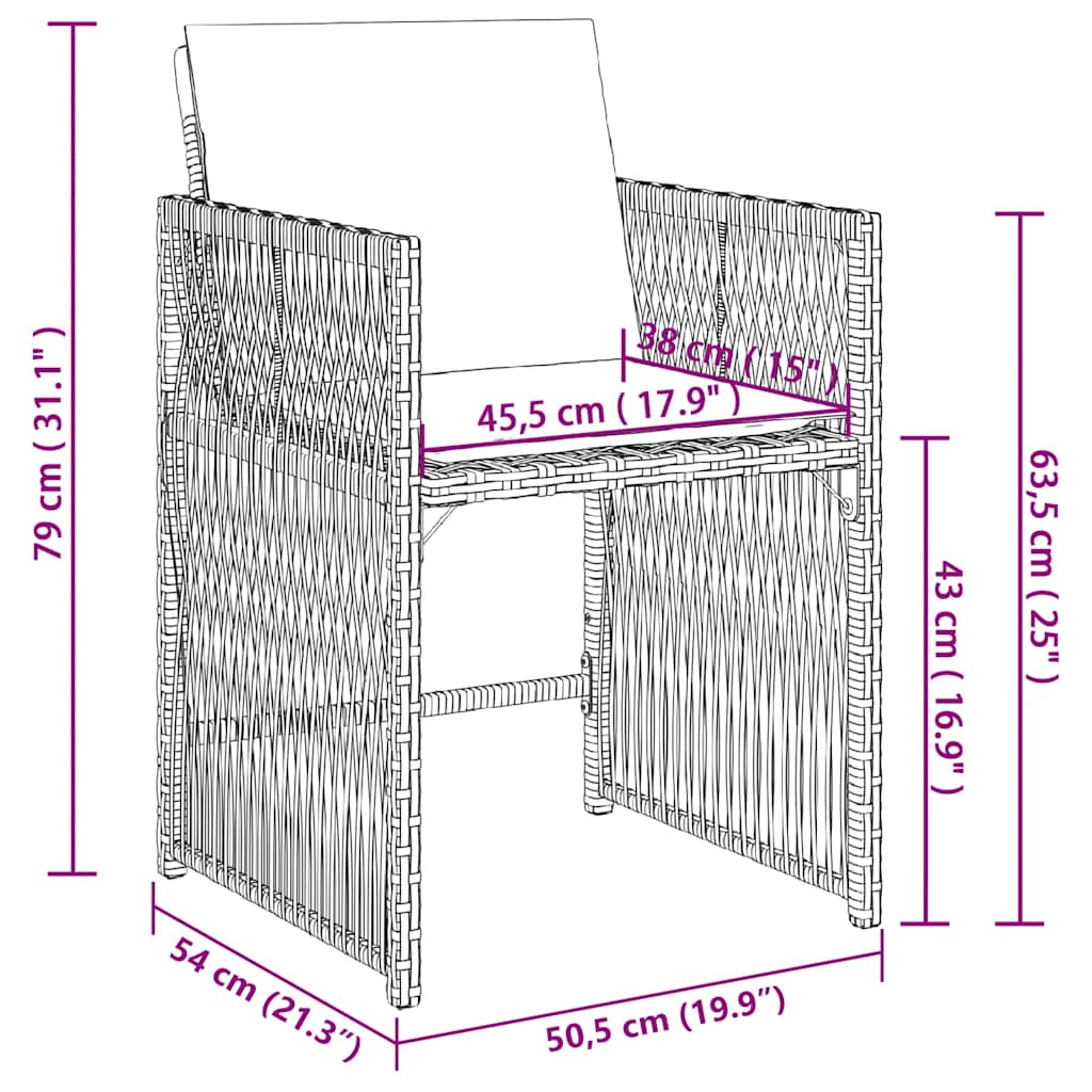 Relax and enjoy the outdoors in these comfortable garden chairs! Durable material: PE rattan, also known as poly rattan, is a strong, low-maintenance synthetic material that looks like natural rattan. It’s lightweight, easy to clean, and commonly used for outdoor furniture due to its durability and weather-resistant properties.Comfortable seat experience: This outdoor furniture, complete with thickly padded cushions, offers a comfortable seating experience.Flap backrest: These chairs have a flap backrest that can be folded down for compact storage.Removable and washable cover: These cushions feature removable covers for easy washing and maintenance. The chair cushion covers have a flap at the back for easy attachment to the chairs.Robust and stable frame: The powder-coated steel frame ensures the garden furniture is strong and stable for daily outdoor use. Good to know:To make sure your outdoor furniture stays beautiful, we recommend protecting it with a waterproof cover.