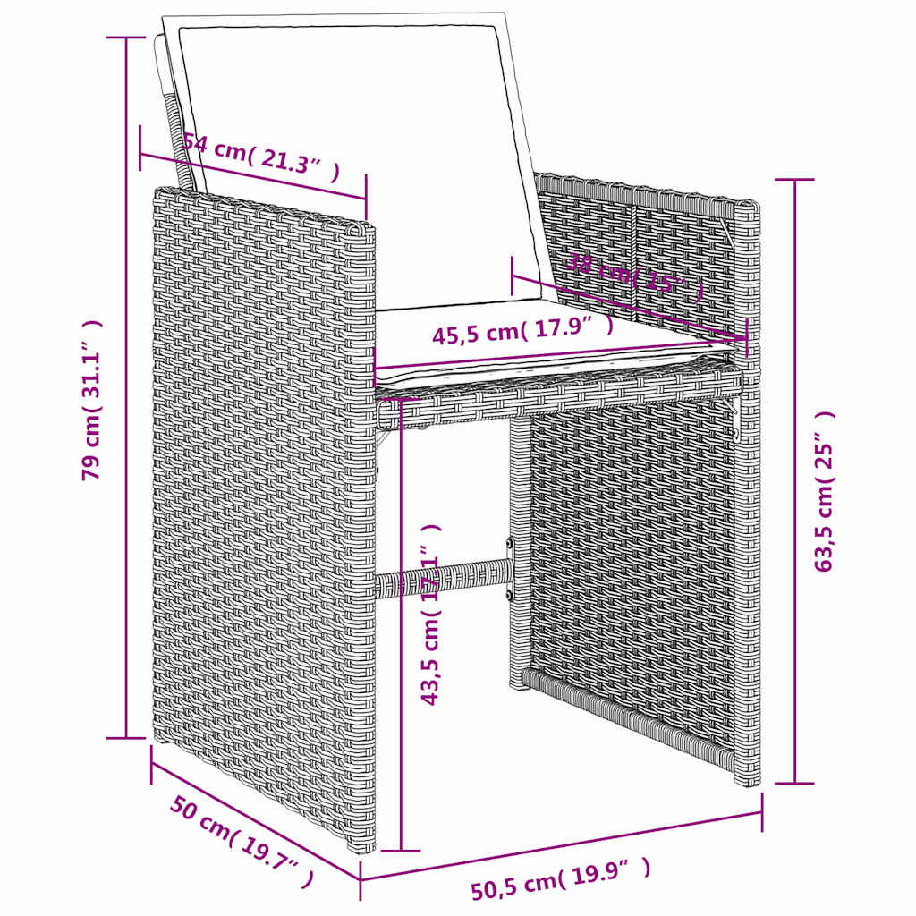 Relax and enjoy the outdoors in these comfortable garden chairs! Durable material: PE rattan, also known as poly rattan, is a strong, low-maintenance synthetic material that looks like natural rattan. It’s lightweight, easy to clean, and commonly used for outdoor furniture due to its durability and weather-resistant properties.Comfortable seat experience: This outdoor furniture, complete with thickly padded cushions, offers a comfortable seating experience.Flap backrest: These chairs have a flap backrest that can be folded down for compact storage.Removable and washable cover: These cushions feature removable covers for easy washing and maintenance. The chair cushion covers have a flap at the back for easy attachment to the chairs.Robust and stable frame: The powder-coated steel frame ensures the garden furniture is strong and stable for daily outdoor use. Good to know:To make sure your outdoor furniture stays beautiful, we recommend protecting it with a waterproof cover.