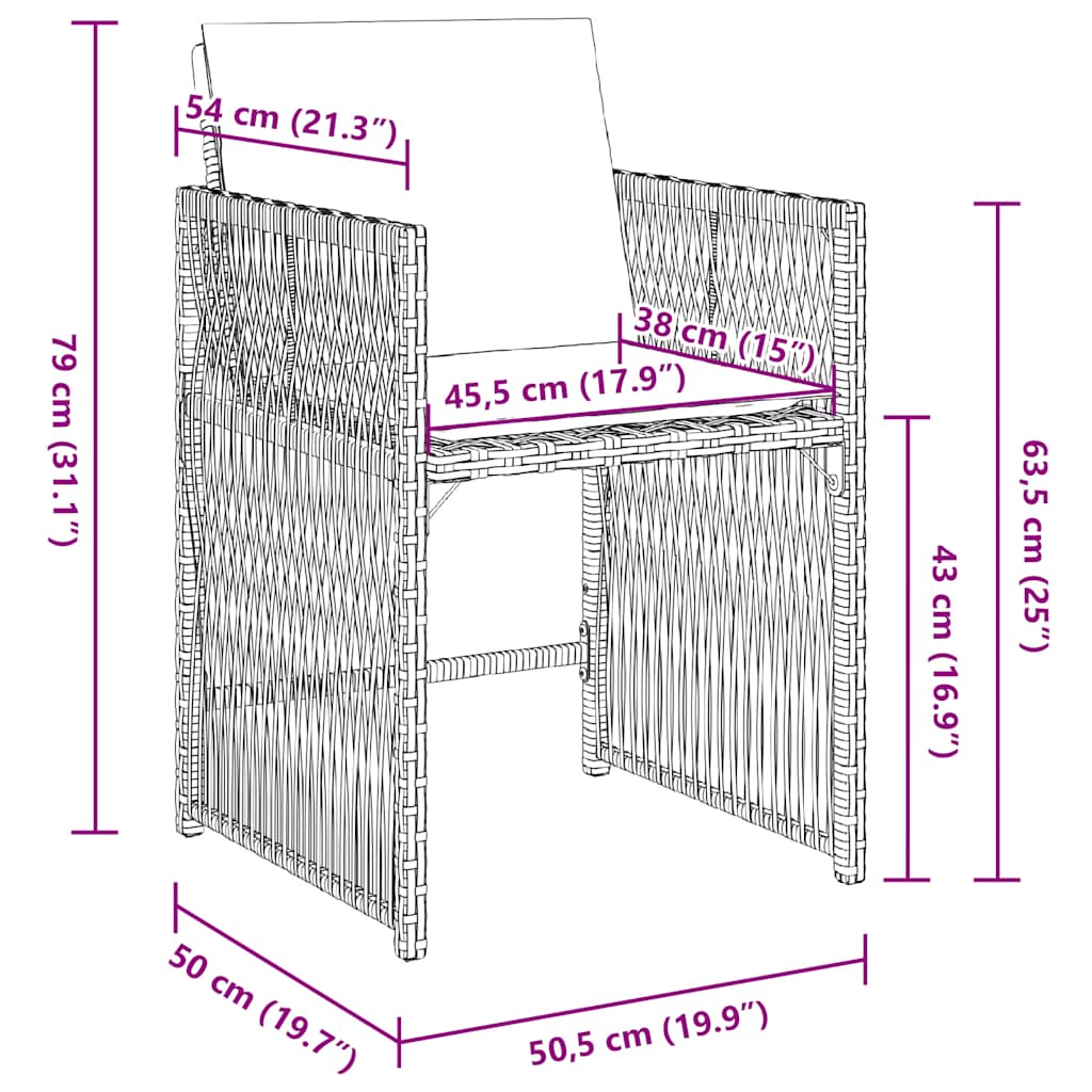 Relax and enjoy the outdoors in these comfortable garden chairs! Durable material: PE rattan, also known as poly rattan, is a strong, low-maintenance synthetic material that looks like natural rattan. It’s lightweight, easy to clean, and commonly used for outdoor furniture due to its durability and weather-resistant properties.Comfortable seat experience: This outdoor furniture, complete with thickly padded cushions, offers a comfortable seating experience.Flap backrest: These chairs have a flap backrest that can be folded down for compact storage.Removable and washable cover: These cushions feature removable covers for easy washing and maintenance. The chair cushion covers have a flap at the back for easy attachment to the chairs.Robust and stable frame: The powder-coated steel frame ensures the garden furniture is strong and stable for daily outdoor use. Good to know:To make sure your outdoor furniture stays beautiful, we recommend protecting it with a waterproof cover.