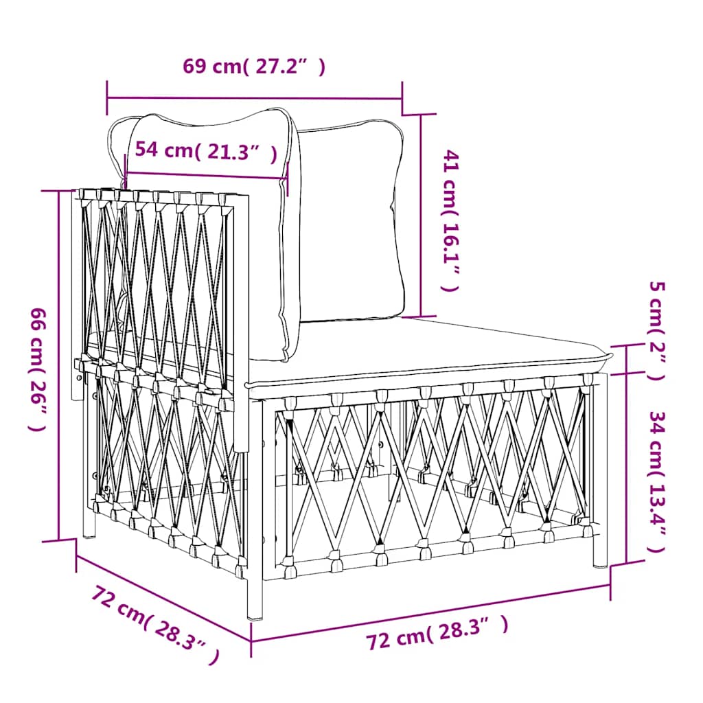 This trendy garden corner sofa, featuring an elegant and contemporary design, is suitable for dining or relaxing in your garden. Durable material: Woven fabric is any textile formed by weaving. It’s an extremely useful type of fabric that we use a great deal in our everyday lives due to its durability and versatility.Sturdy frame: The powder-coated steel frame makes the garden sofa sturdy and stable for daily outdoor use.Comfortable seat experience: The backrest adds extra seating comfort for the outdoor sofa. Also, the thickly padded cushions provide comfort for your sitting time.Modular design: The garden seating is flexible and easy to move around, so you can combine it with other modular segments in the webshop to create your own personal garden lounge set configurations! Note:To make sure your outdoor furniture stays beautiful, we recommend protecting it with a waterproof cover.