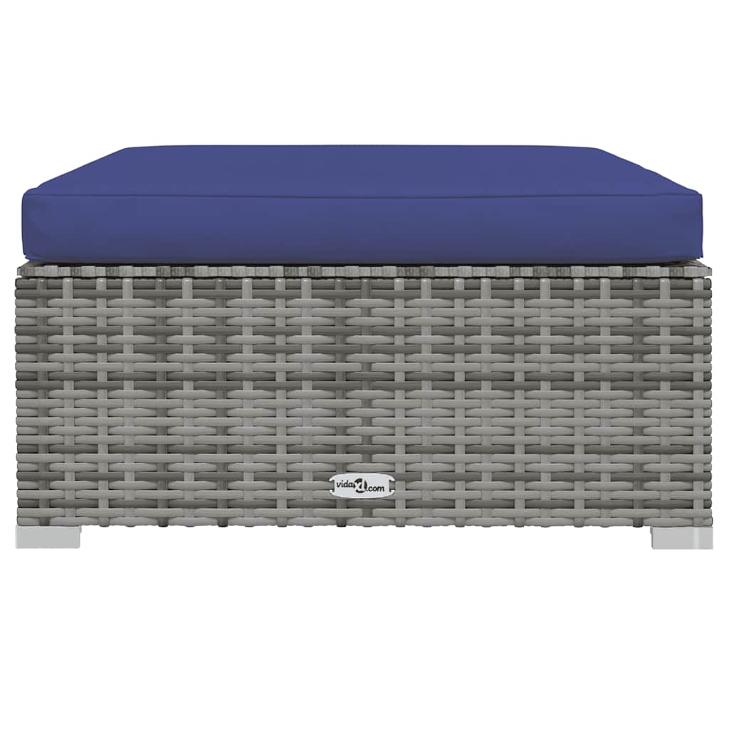 vidaXL Garden Footrest with Cushion Grey 70x70x30 cm Poly Rattan