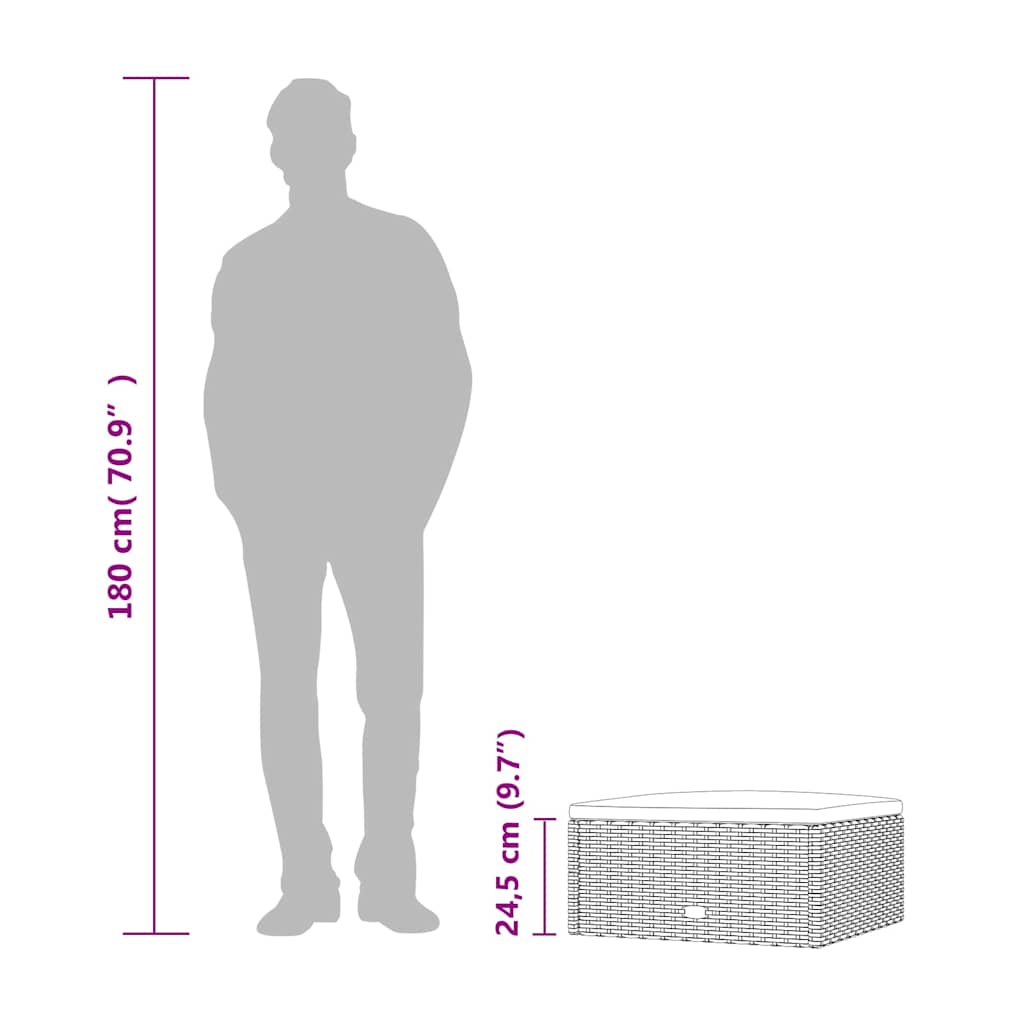 Relax and enjoy your outdoor living space with this garden footstool! Durable material: PE rattan, also known as poly rattan, is weather resistant and easy to clean. It remains beautiful on the outside for a long period of time. It’s more economical than other materials, while offering great quality, convenience and an aesthetic look.Stable frame: Steel is an exceptionally hard and strong material. It offers sturdiness and stability. The powder coating on steel creates a protective layer against wear and tear.Modular design: You can purchase other sectional units with the same design and style in our webshop to arrange your own furniture patterns.Comfortable seat experience: With the thickly padded seat cushion, the footstool is highly comfortable. Good to know:To make assembly as easy as possible, each product is delivered with a manual. Note:To make sure your outdoor furniture stays beautiful, we recommend protecting it with a waterproof cover.