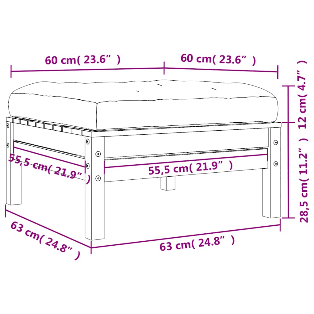 vidaXL Garden Footstools with Cushions 2 pcs Wax Brown Solid Wood Pine