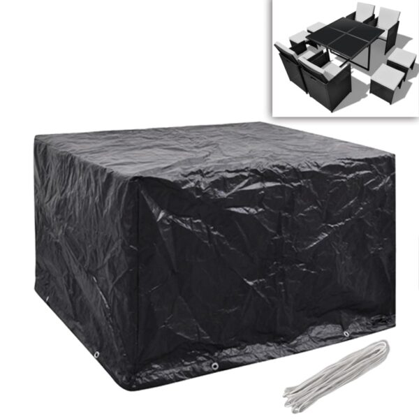 This high-quality garden furniture cover is suitable for protecting your rattan sets from dirt, wind, rain and UV light year round. The cover is made of durable polyethylene, which is waterproof, UV-resistant, tearproof and thus suitable for daily use. It has 8 aluminium eyelets and a fastening rope, so it will fit your set better. The cover is suitable for our 4 Person Rattan Set with SKU 40922 / 40835. You can also use this cover for other furniture sets, as long as it is consistent with the size of your furniture. Delivery includes 2 garden furniture covers