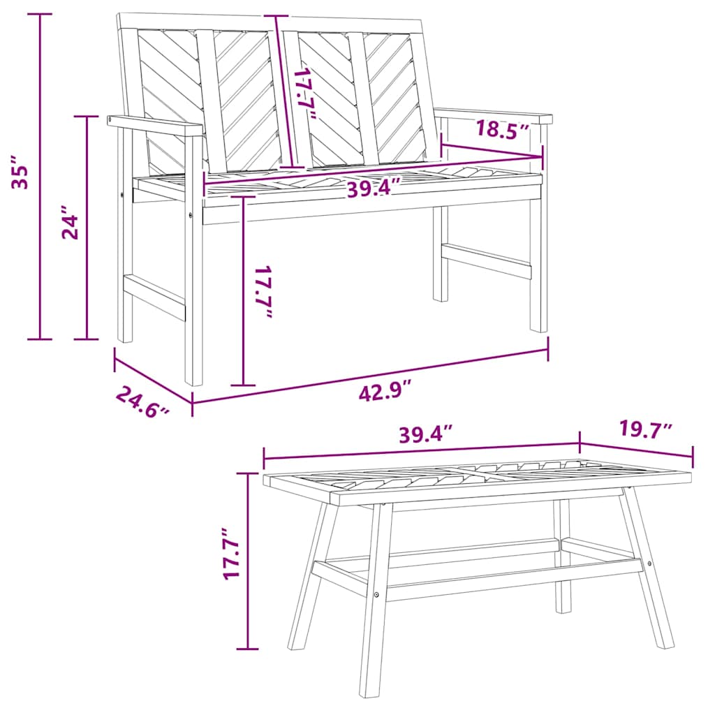vidaXL Garden Lounge Set 2 pcs Brown Solid Acacia wood