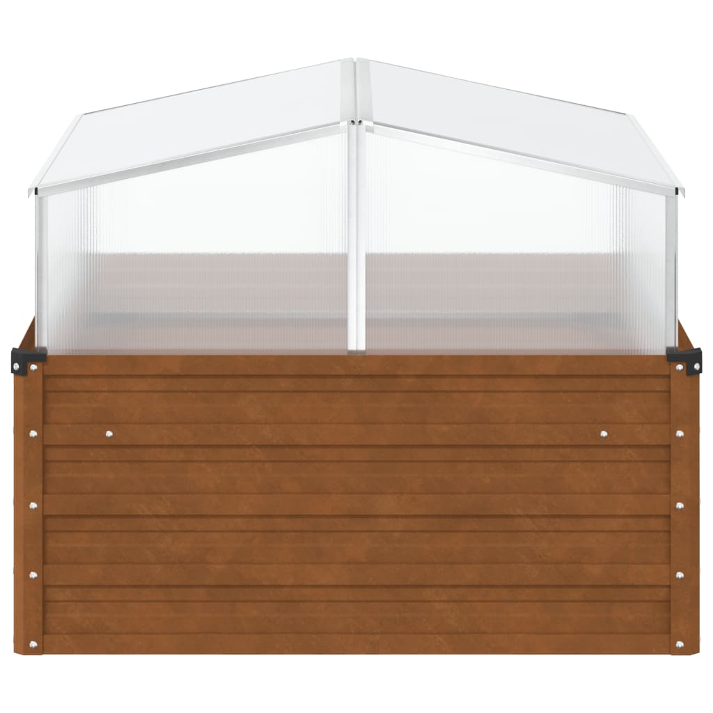 This planter would be great for DIY enthusiasts to decorate your gardens, balconies, or patios. Durable material: The flower box is made of steel, making it weather resistant and very practical for outdoor use.Ample space: The planter box is deep and wide enough to hold a large amount of soil and provide ample space for your plants, vegetables, herbs, and flowers.Open bottom: The bottomless design provides good drainage for plants and prevents water buildup that causes the roots of plants to rot. It also allows plants to better absorb nutrients. You can place it on soil, grass, or concrete floors.Decorative function: The flower stand can hold your favourite plants or flowers, which is ideal for your garden as decoration.Practical Design: This planter is equipped with a greenhouse that allows you to cultivate and grow your own greenhouse plants.