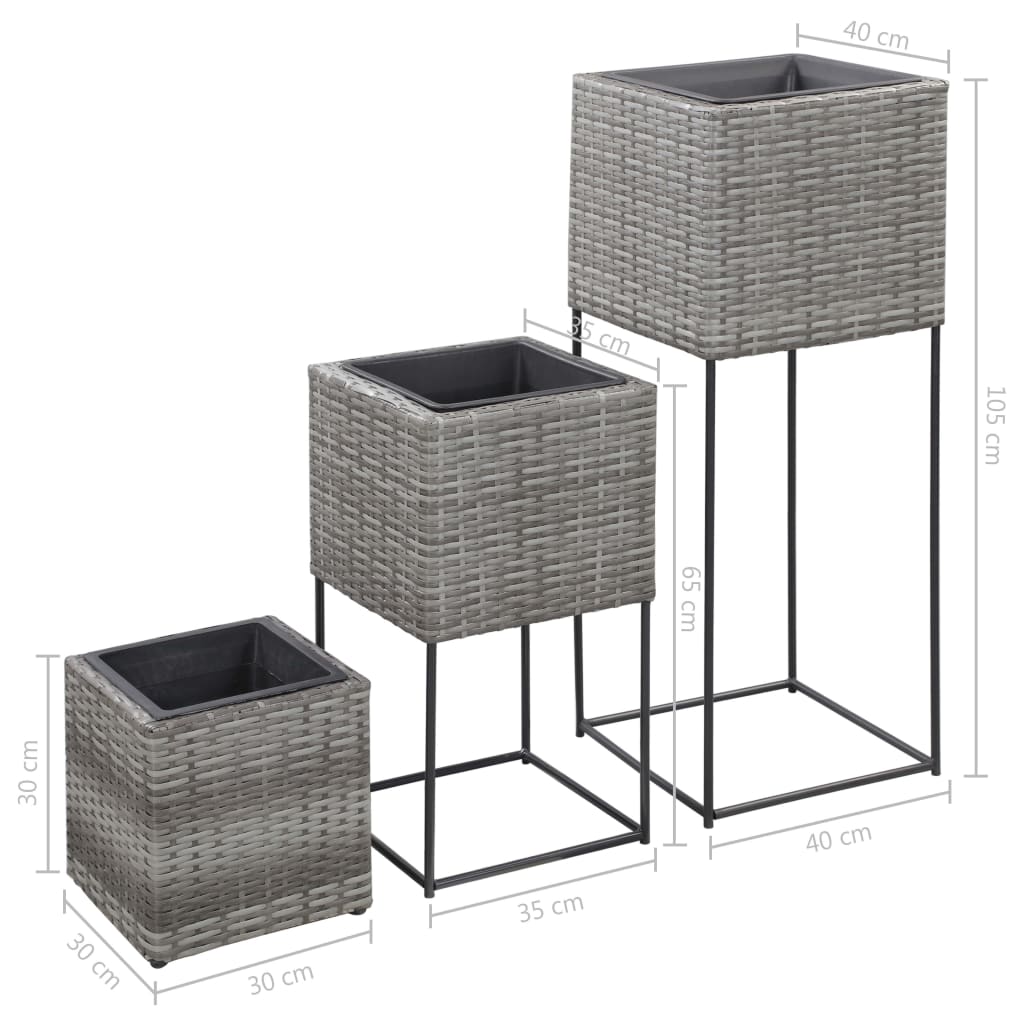 vidaXL Garden Raised Beds 3 pcs Poly Rattan Grey