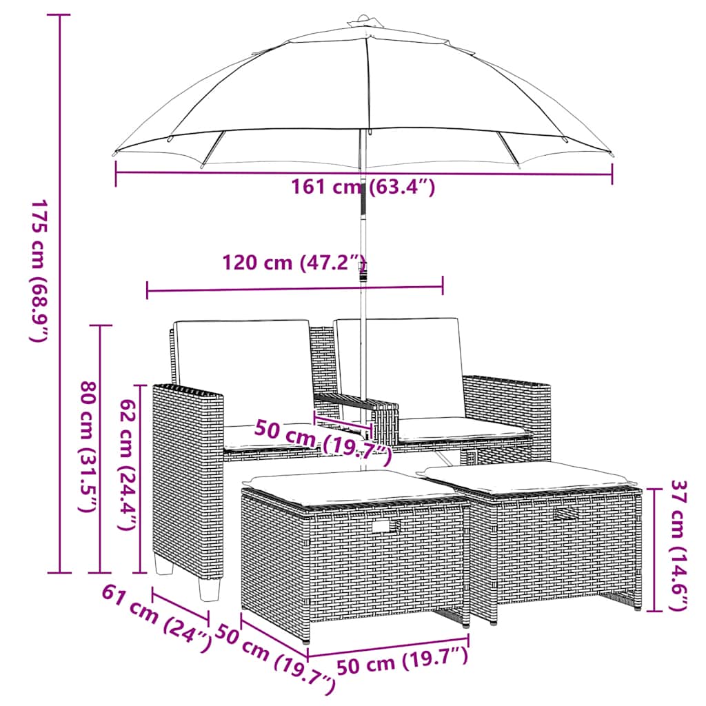 vidaXL Garden Sofa 2-Seater with Parasol and Stools Beige Poly Rattan Original price was: $505.97.Current price is: $252.98.