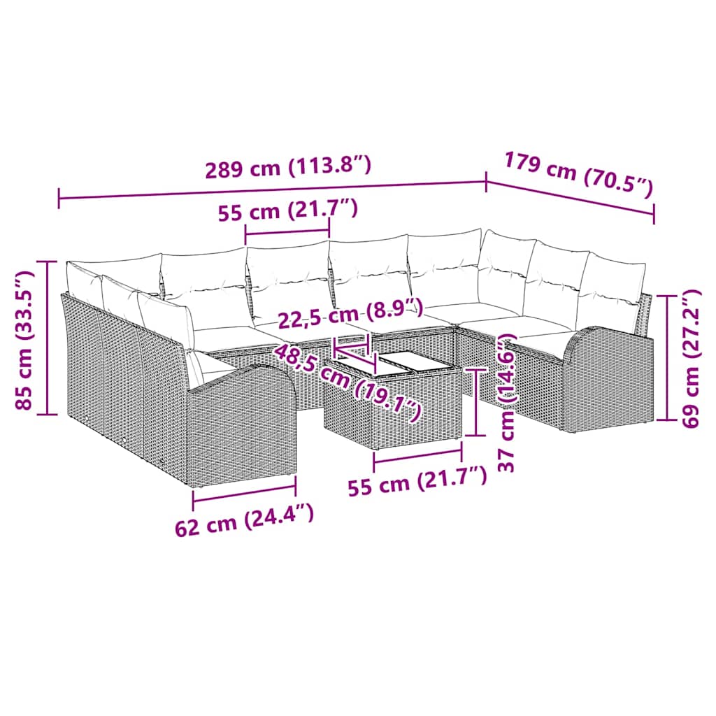 vidaXL Garden Sofa Set 10 pcs Black Poly rattan
