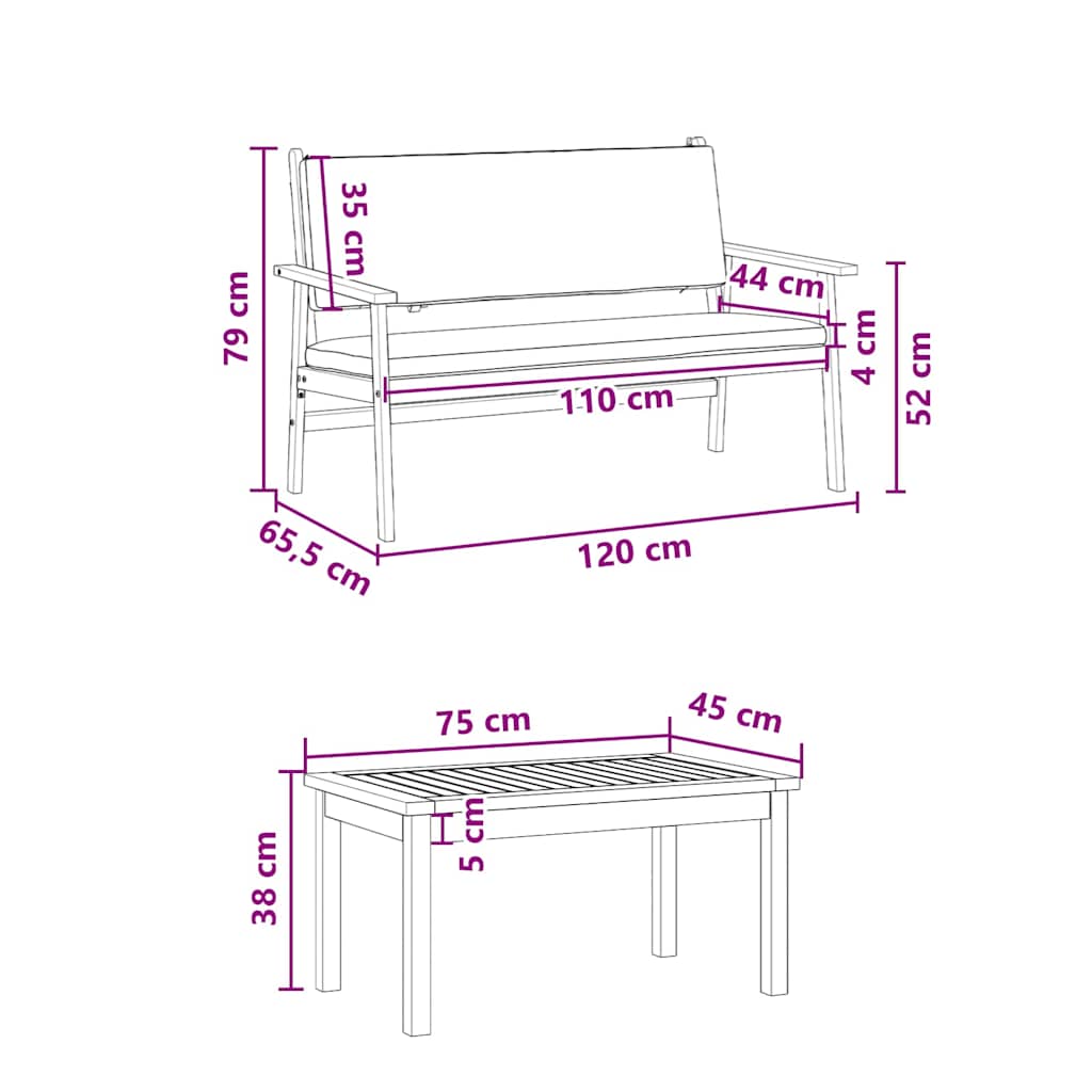 vidaXL Garden Sofa Set 2 pcs Brown Solid Acacia wood