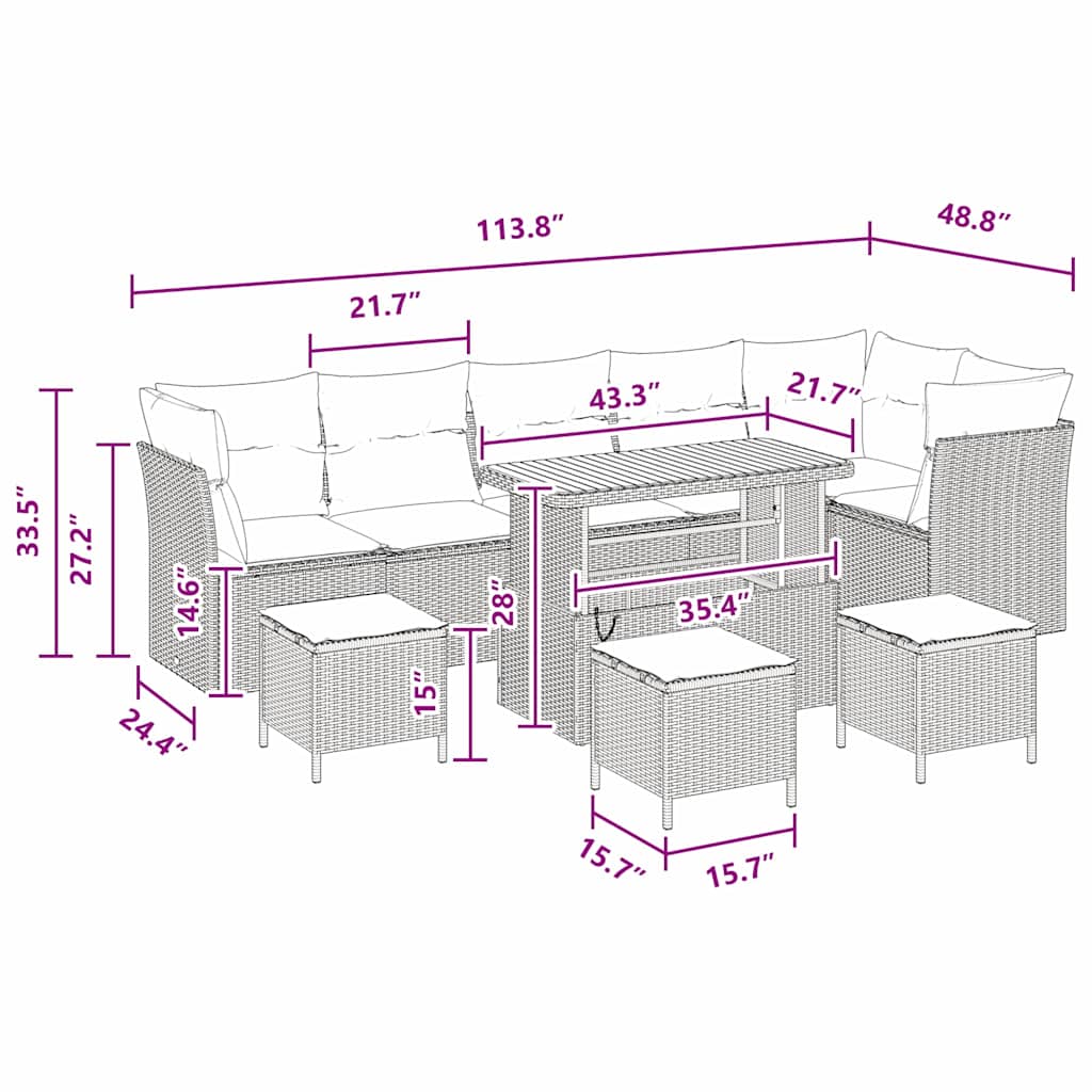 vidaXL Garden Sofa Set with Cushion 10 pcs Black 110 x 55 x 71 cm