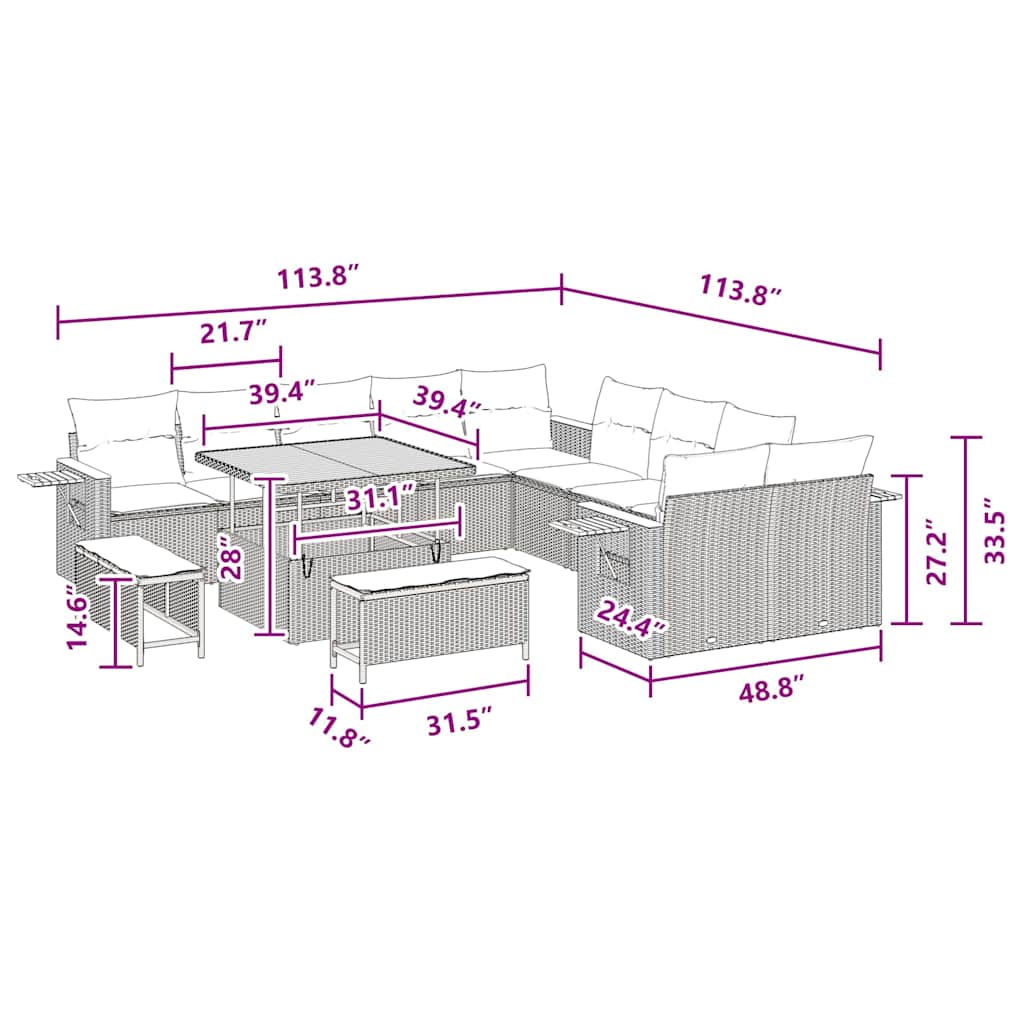 vidaXL Garden Sofa Set with Cushion 13 pcs Black 100 x 100 x 71 cm