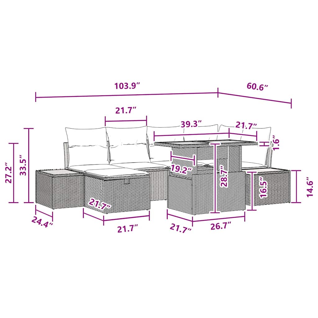 vidaXL Garden Sofa Set with Cushion 7 pcs Black Poly rattan