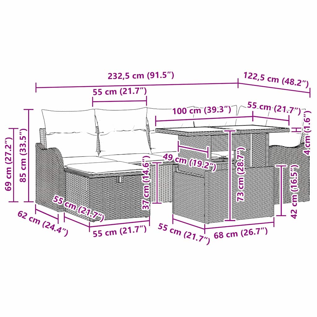 vidaXL Garden Sofa Set with Cushion 7 pcs Grey Poly rattan
