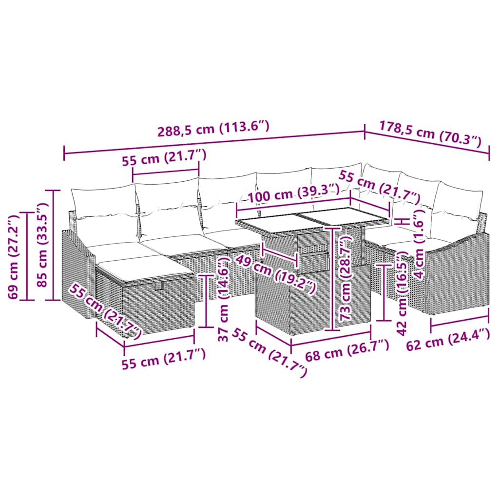vidaXL Garden Sofa Set with Cushion 9 pcs Grey Poly rattan