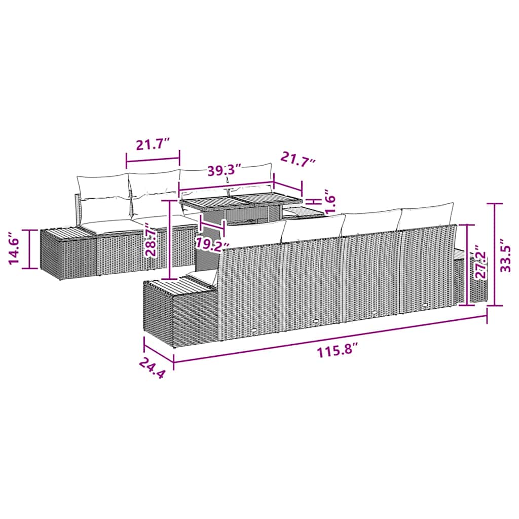 vidaXL Garden Sofa Set with Cushion 9 pcs Black Poly rattan