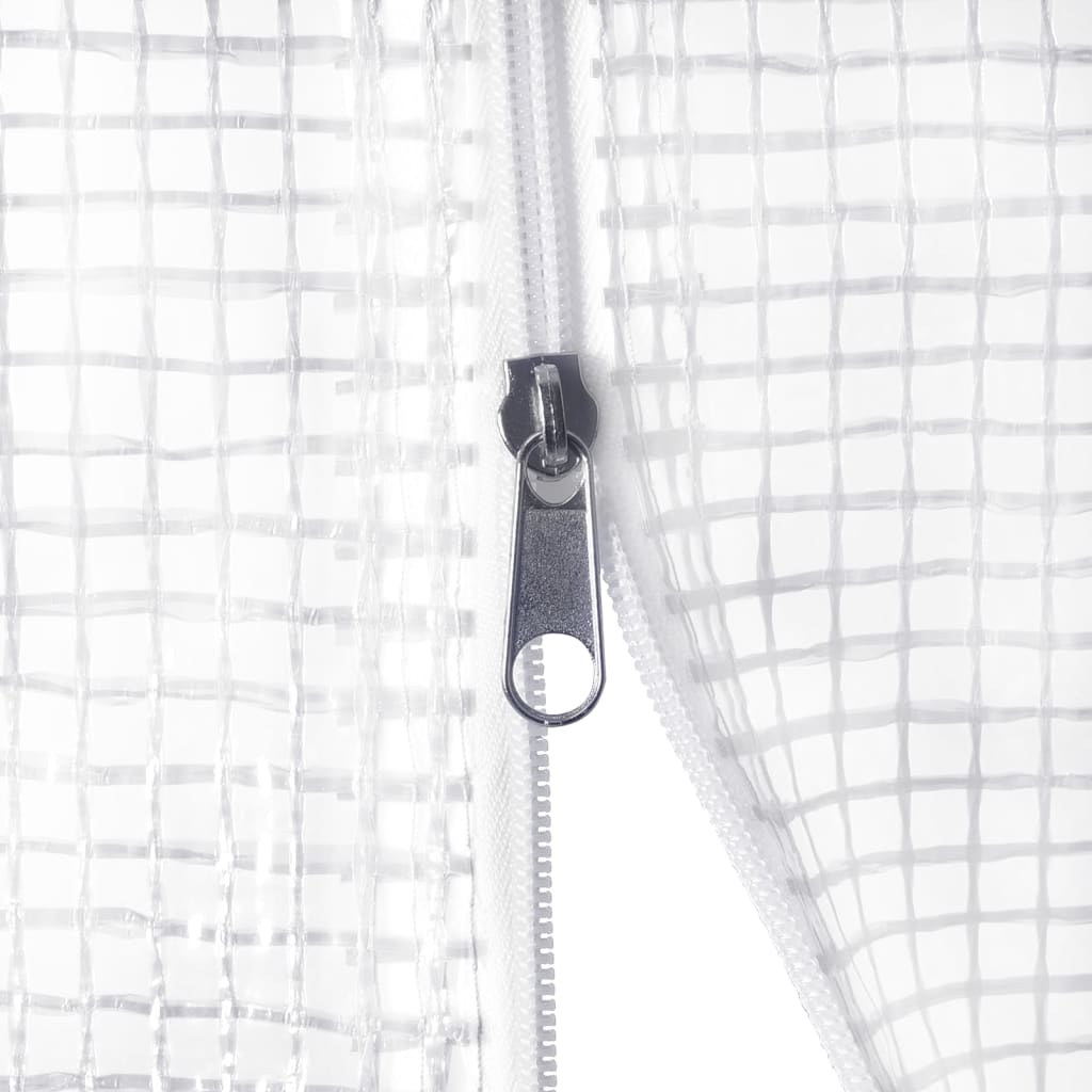 This spacious greenhouse can accommodate a considerable number of fruits, vegetables and plants. It is ideal for protecting your plants from adverse weather conditions. Durable PE cover: Polyethylene (PE) is the most widely used plastic material. It is UV-resistant, weather-resistant, anti-tear, lightweight, and easy to maintain. It also protects your plants against the damage from birds while offering heat preservation.Sturdy frame: Steel is an exceptionally hard and strong material. It offers sturdiness and stability. Galvanisation provides better protection against corrosion and is useful for products that’ll be used outdoors as well as in harsh environments.Practical design: The plant house is designed for easy access and optimized air circulation thanks to its zippered roll-up door and 4 side roll-up mesh windows. Good to know:We recommend adding the foundation for added sturdiness. The roof of the greenhouse cannot withstand heavy snowfall.