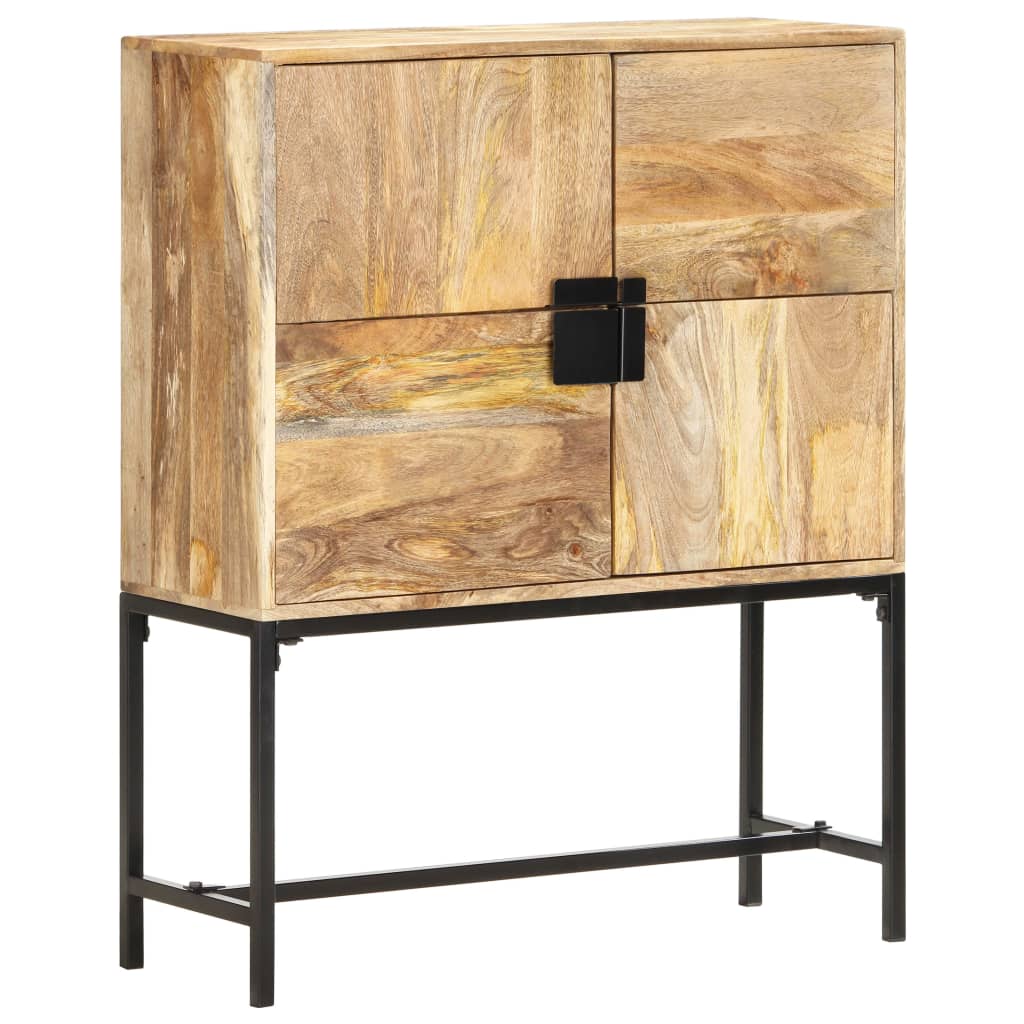 Featuring a rustic and trendy design, this solid wooden highboard will make a decorative as well as practical addition to your décor! The highboard is made of solid mango wood which is highly stable and durable. Mango wood is a dense and robust hardwood which has beautiful brown or golden streaks and contours on its surface. The exquisite craftsmanship and the aesthetically-appealing wood grains make every piece of furniture unique and slightly different from the next. Every step of the process is carried out with the greatest care, be it polishing, painting or lacquering. Designed with 4 doors, this highboard offers ample storage space to keep your books, DVDs and multimedia devices well organised and within reach. The powder coated steel legs add to sturdiness and durability. Important note: The colours and grains of the wood may vary from piece to piece, making each piece unique and slightly different from the next. The delivery is random, ensuring the exclusivity and individuality of your product.