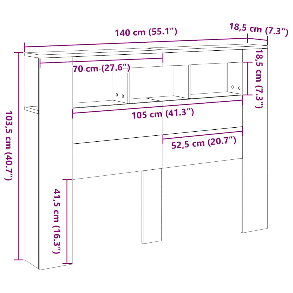 vidaXL LED Headboard Black oak 140 x 18.5 x 103.5 cm Engineered wood