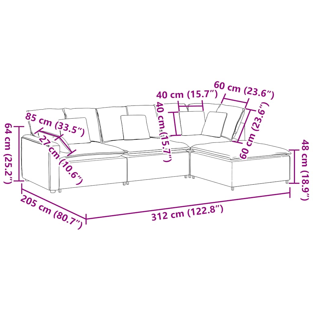 vidaXL Modular Sofa with Footstool&Cushions Fabric Dark Grey