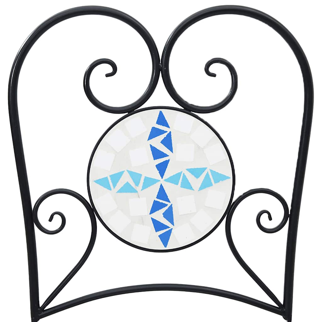 vidaXL Mosaic Bistro Set Blue and White Iron and Ceramic
