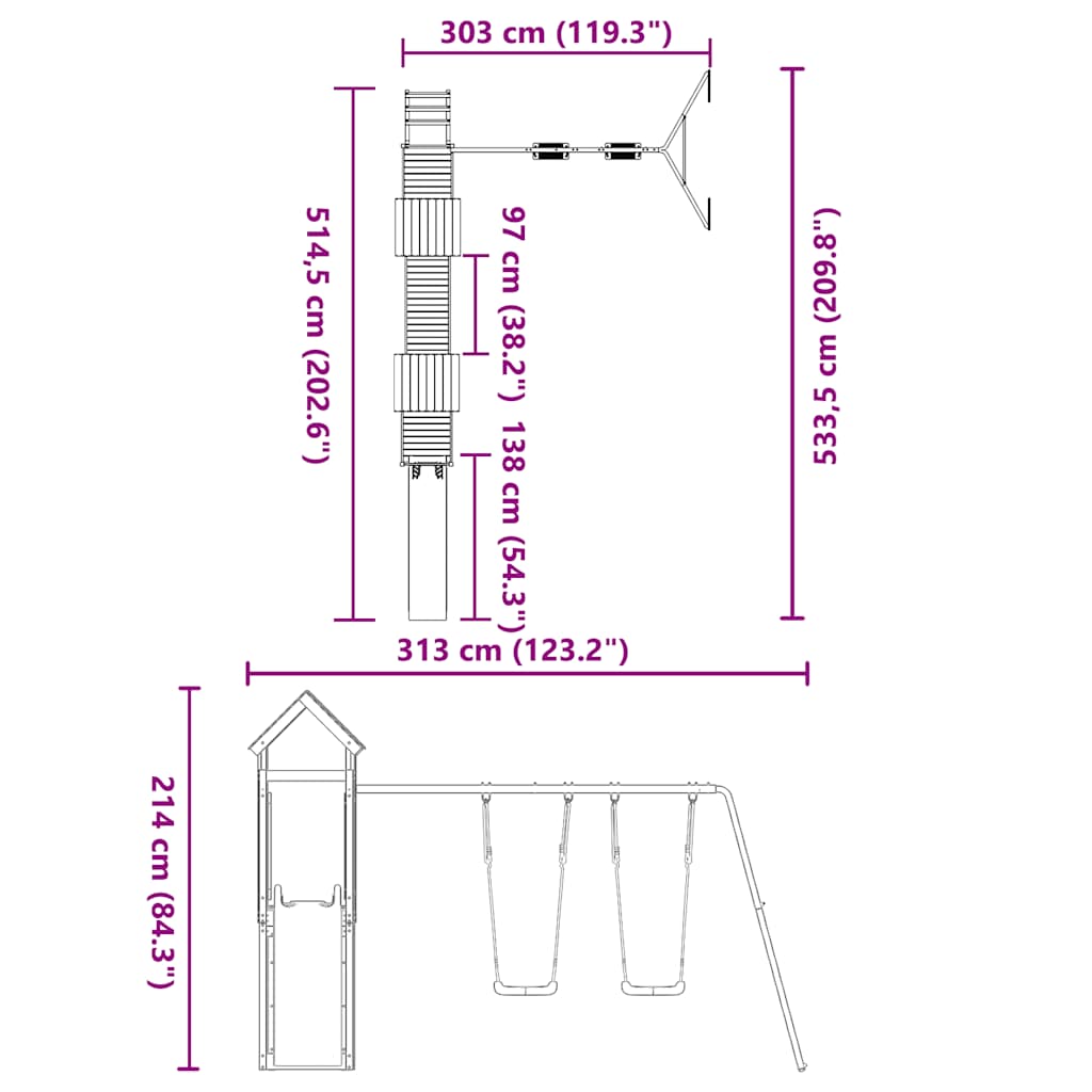 - Swing dimensions: 32.5 x 22 x 112.5 cm (W x D x H)