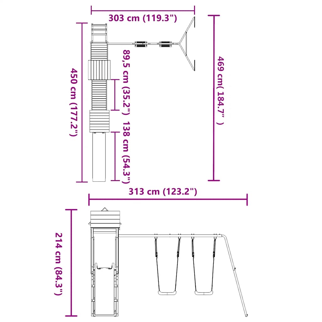 Do you want to give your children the freedom to play at home? This wooden outdoor playset transforms your backyard into a playground for imaginative adventures! Durable material: This climbing frame with slide is made of solid douglas wood. Solid douglas wood is a highly durable wood that works well for outdoors. Douglas wood is also strong enough to work with minimum care, even under the influence of the weather. Sturdy and stable frame: The wooden frame of the garden climbing frame ensures sturdiness and stability. In addition, the “A” shaped legs of the children’s swing allow for balance.Multi-activity centres: The climbing frame features a 90 cm height platform and stands out with its wave slide, a double swing set, a ladder as well as sandpits. Your little ones can also invite their friends to join the fun. Thoughtful design: The surrounding wooden railings are designed to ensure the safety of children during their happy play. Also, the wooden roof provides shade for your children on hot summer days. Endless fun: This fun-filled wooden outdoor playhouse is the perfect way for your children and their friends to enjoy entertainment, have more interactive time and make memories for you and your children! Warning:Only for domestic useOutdoor use Not suitable for children under 3 years Recommend user age: 3-8 years old Good to know:To make assembly as easy as possible, each product is delivered with a manual.