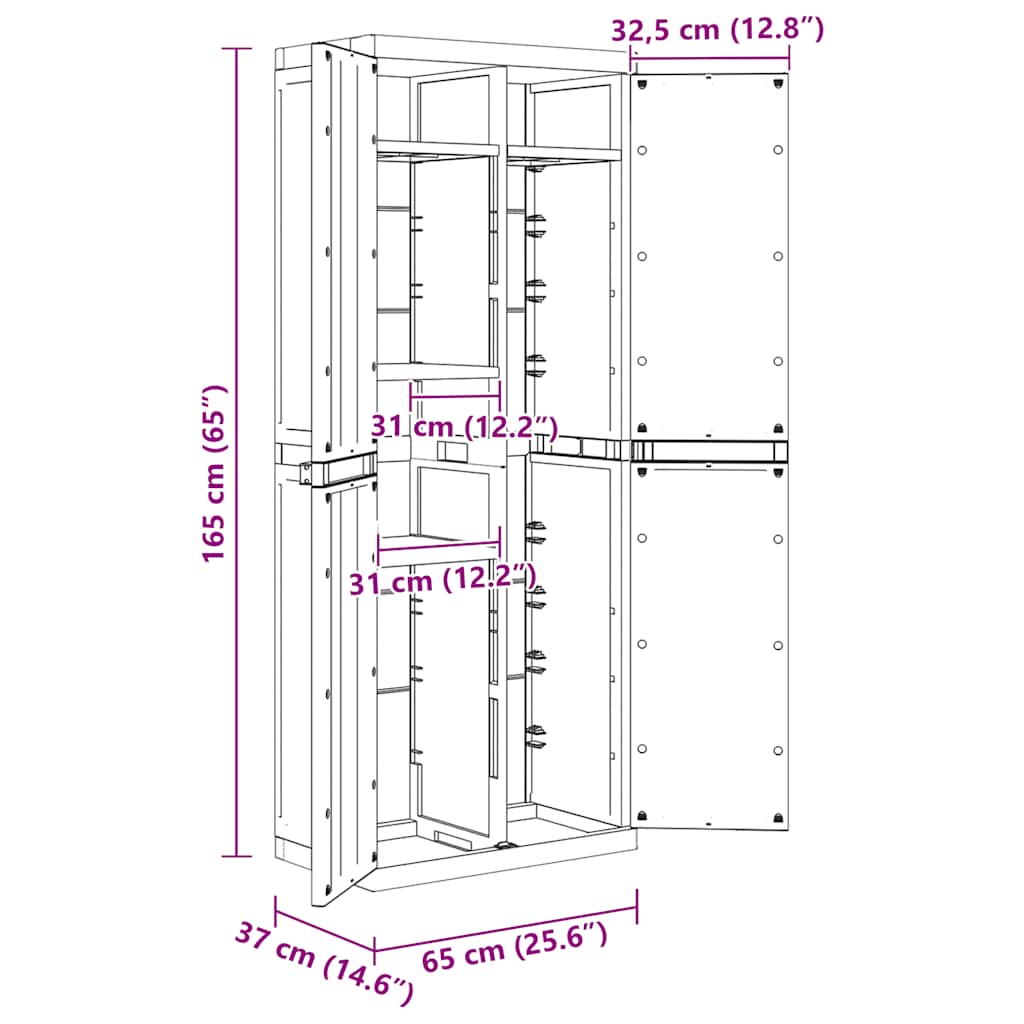 vidaXL Outdoor Storage Cabinet Grey and Black 65x37x165 cm PP