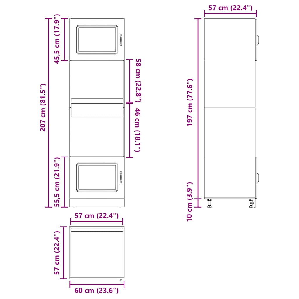 - Overall dimensions: 60 x 57 x 207 cm (W x D x H)