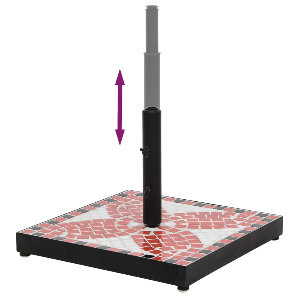 This parasol base is uniquely stylish and functional. It safely secures your patio umbrella while serving as a beautiful accent to your outdoor seating area. Sturdy material: Iron is a strong and hard material. It’s a solid favourite in industrial and furniture construction. The powder coating on iron creates a protective layer against wear and tear.Practical surface: The surface of the umbrella stand is made of ceramic tile. It is easy to clean and maintain while adding extra weight.Adjustable knobs: The umbrella base is easily adjustable with two side knobs to secure your umbrella.Unique pattern: The ceramic tile pattern of the parasol weight adds a classic and stylish style to your outdoor living place. Good to know: To make assembly as easy as possible, each product is delivered with a manual.