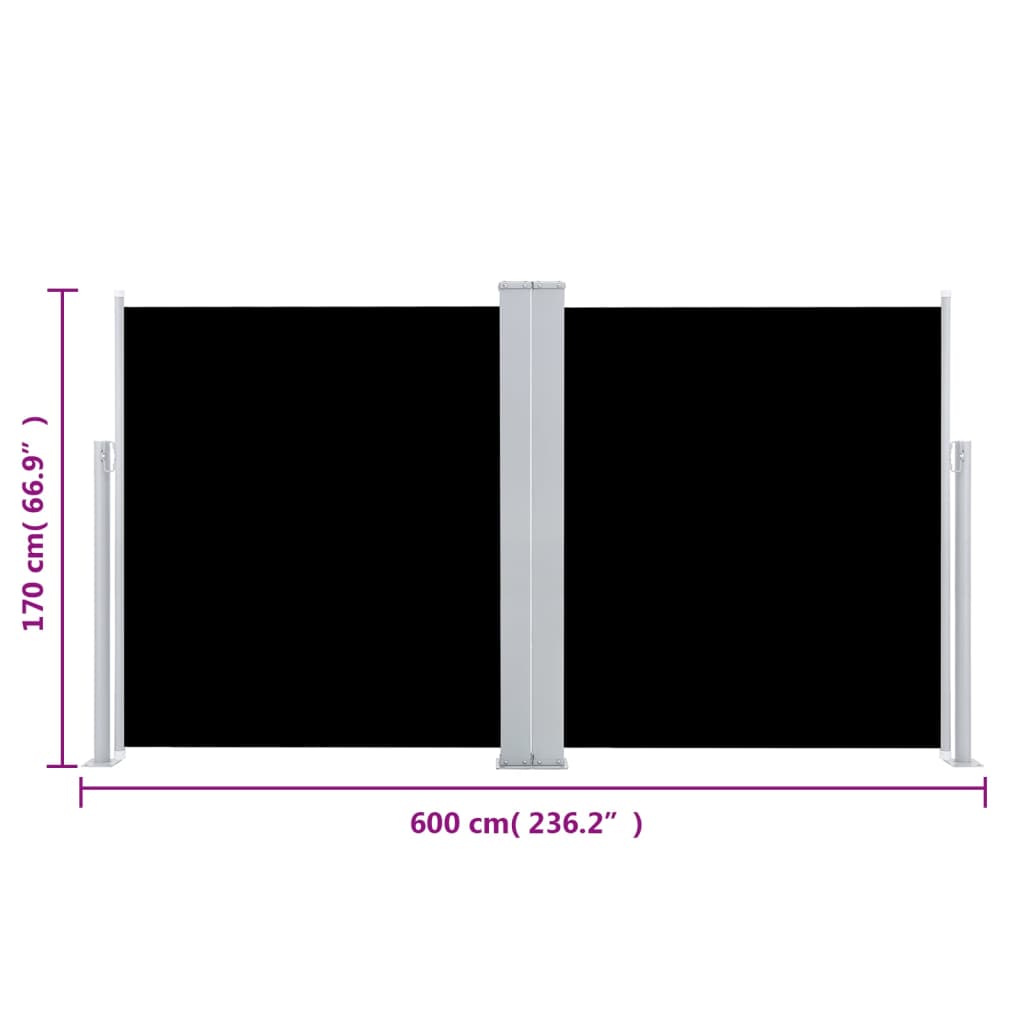 vidaXL Patio Retractable Double Side Awning 170×600 cm Black