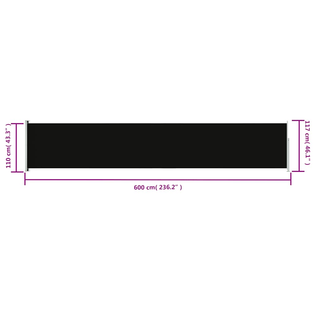 vidaXL Patio Retractable Side Awning 117×600 cm Black