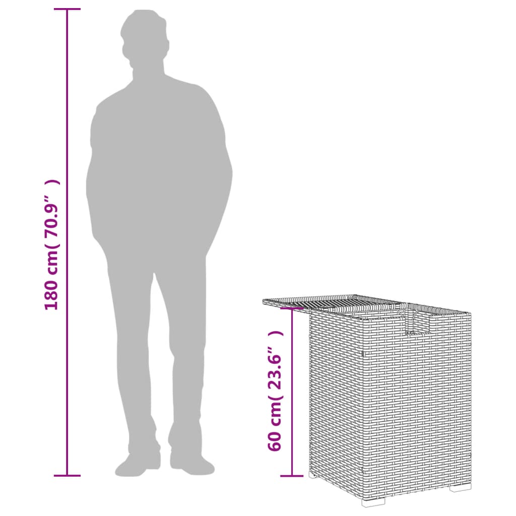 Make a neater outside space with this propane tank cover table! Durable material: PE rattan, also known as poly rattan, is a strong, low-maintenance synthetic material that looks like natural rattan. It’s lightweight, easy to clean, and commonly used for outdoor furniture due to its durability and weather-resistant properties.Hideaway storage: This propane tank hideaway table is designed to conceal standard 9 kg propane tanks, enhancing the look of your outdoor spaces while ensuring child safety.Convenient access: The hinged lid and hose opening provide easy access to your gas tank.Versatile functionality: This outdoor furniture serves a dual purpose as a propane tank cover and a convenient side table for keeping daily items within easy reach.Robust and stable frame: The powder-coated steel frame ensures that the garden furniture is strong and stable for daily outdoor use. Good to know:To make sure your outdoor furniture stays beautiful, we recommend protecting it with a waterproof cover.