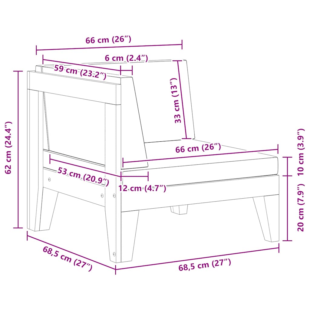 - Corner sofa dimensions: 68.5 x 68.5 x 62 cm (W x D x H)