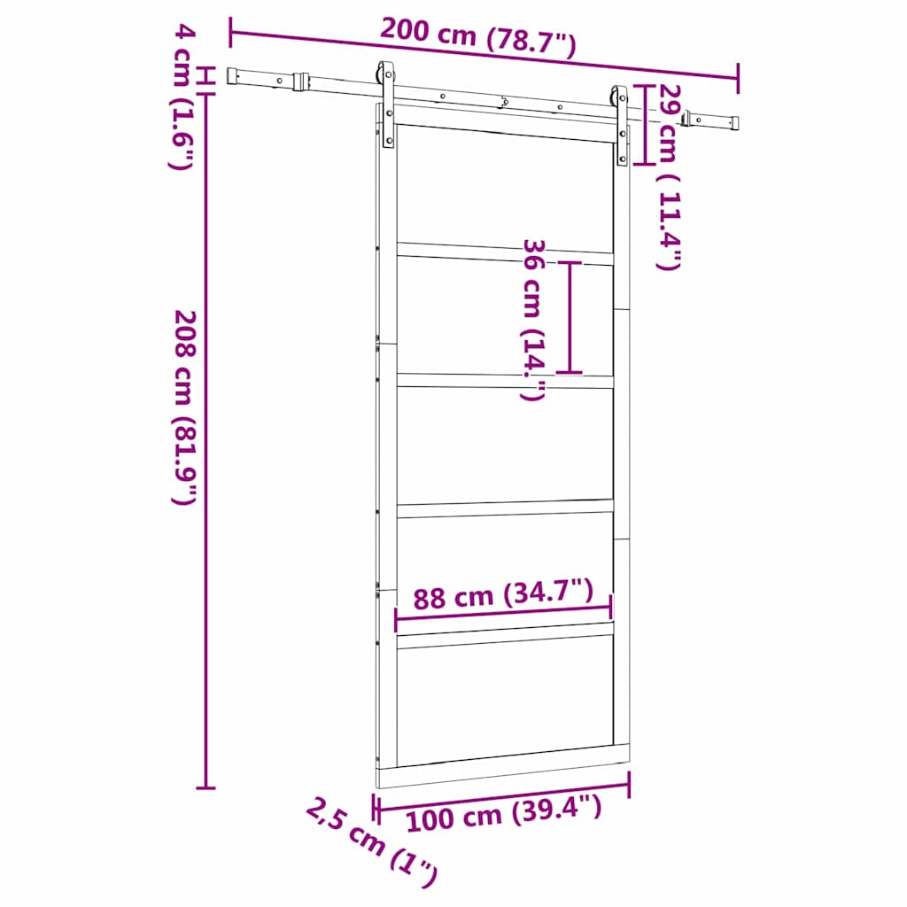 vidaXL Sliding Door Brown 100 x 208 cm Solid pine wood