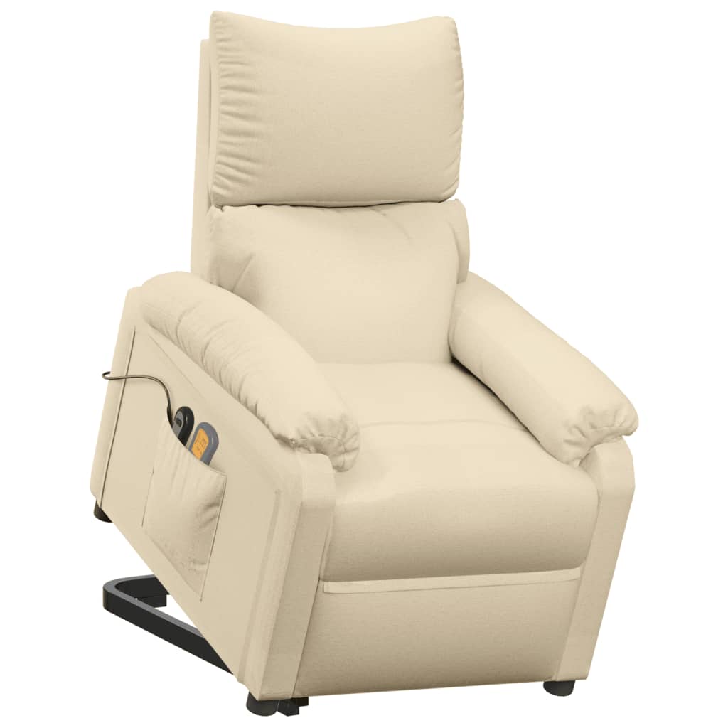 Sit back and drift away in this highly comfortable stand up massage chair! Manual reclining function: The reclining chair is specially designed with 3 reclining positions so that you can adjust the backrest and footrest manually as per your comfort.Power lift function: This recliner chair for the elderly is equipped with an electric motor for the lifting function. Thanks to the function that pushes the entire chair up, you can easily stand without stressing your back and knees with the 2-button hand control.Vibration function: The featured 6 massage points let you experience a better-targeted massage. Additionally, the included hand control allows you to pick different massage programs. The massage function is powered by the USB connector, but the certified 5V USB power source is not included.Comfortable seat experience: The thickly padded seat, backrest, and wide armrests covered in fabric provide a cosy and warm sensation, making you feel embraced while seated. The fabric features a simple and clean look, and is breathable and durable.Solid and stable frame: The frame made of wood and metal provides a strong structure and stability. This reclining armchair is comfortable and durable.
