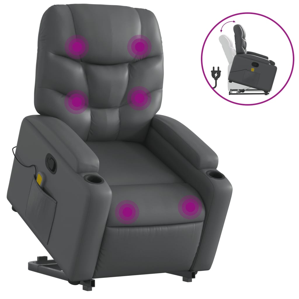vidaXL Stand up Massage Recliner Chair Grey Faux Leather
