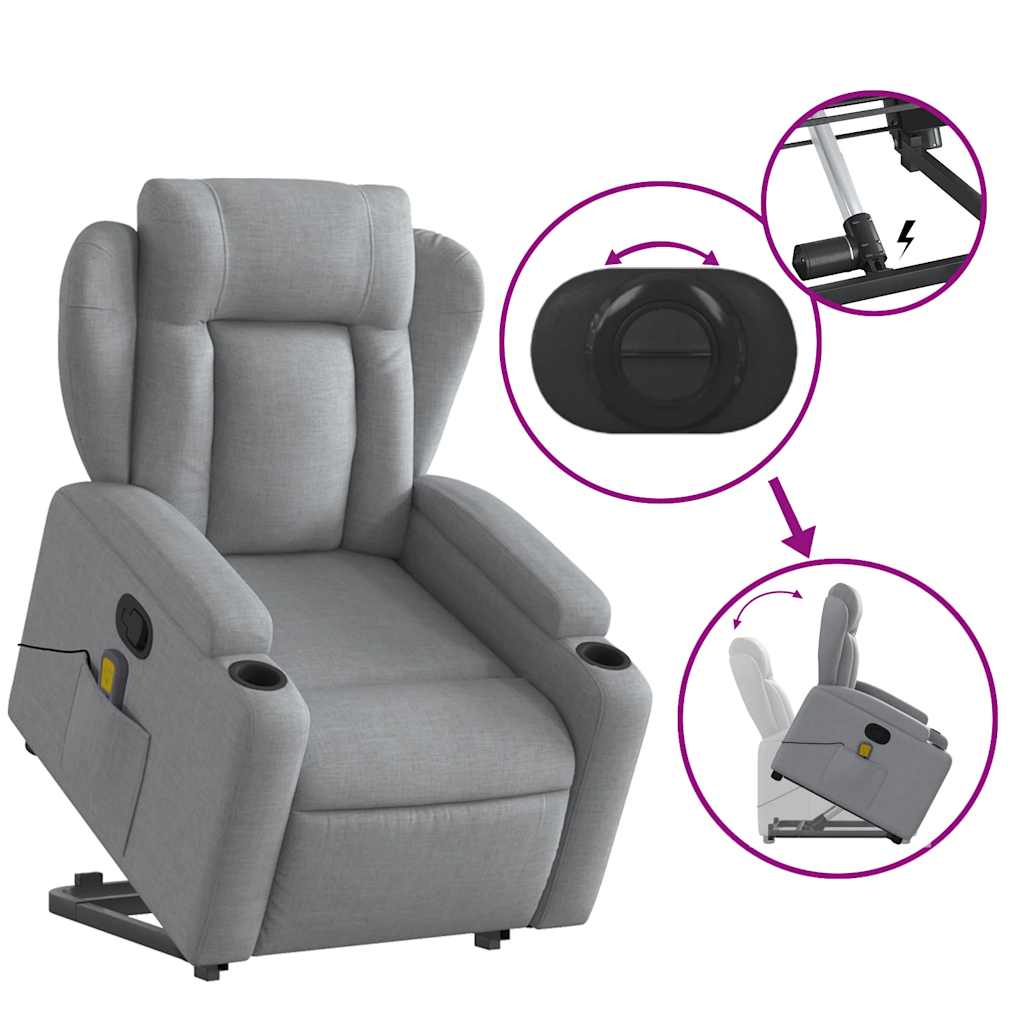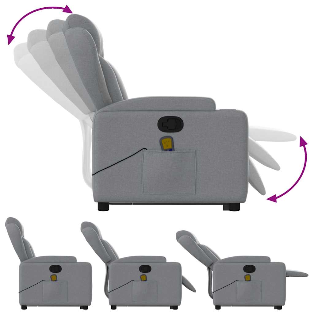 vidaXL Stand up Massage Recliner Chair Light Grey Fabric