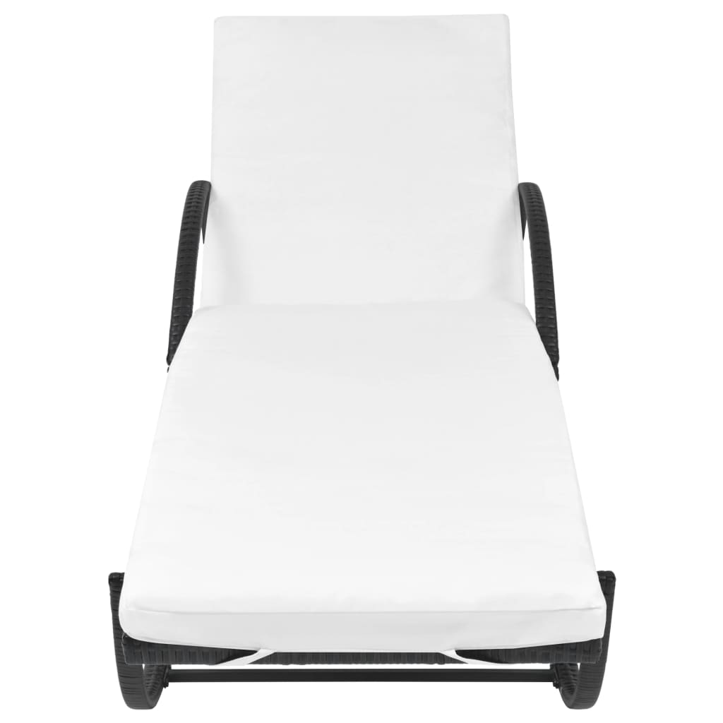 vidaXL Sun Lounger with Cushion Poly Rattan Black