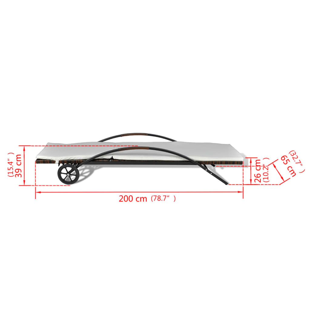 vidaXL Sun Lounger with Cushion & Wheels Poly Rattan Brown