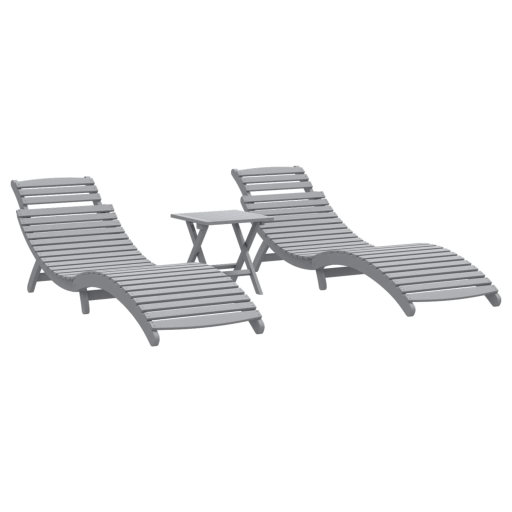 vidaXL Sun Loungers 2 pcs with Table Grey Solid Wood Acacia